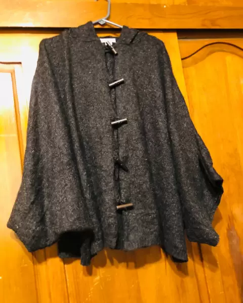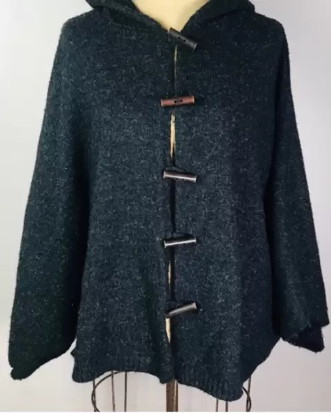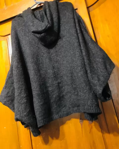 Suéter Capa de lana. Es el mismo de los fotos. Mismo color mismo modelo. Hermosa capa con gorro. Puede quedar a S, M y L por su forma. Muy calientita y cómoda. Da un estilo muy elegante.Los materiales son:-lana, acrílico, poliéster y nylon. Made in Taiwán