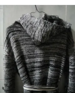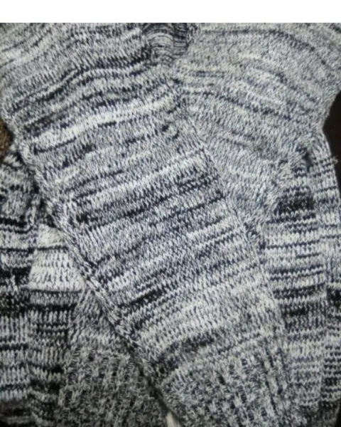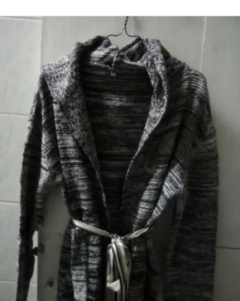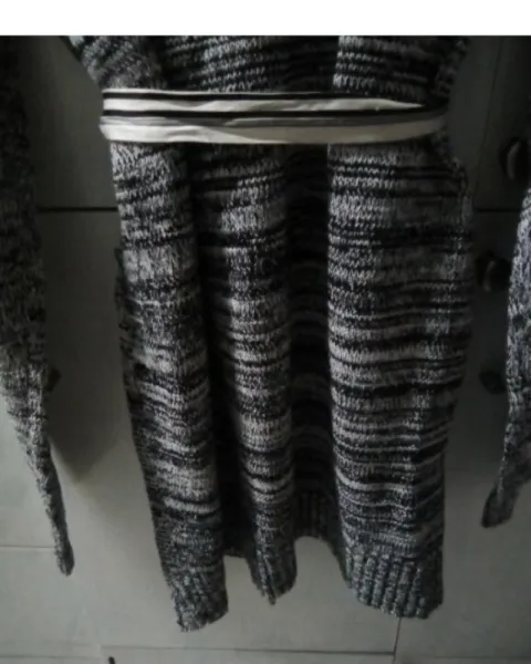 Suéter largo blanco con negro con gorro talla mediana con bolsas a los lados muy calientito con jeans se ve muy padre