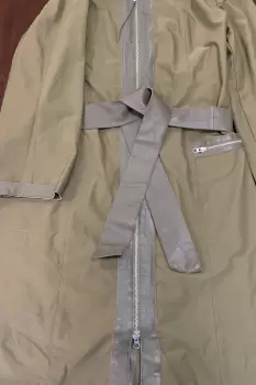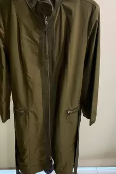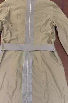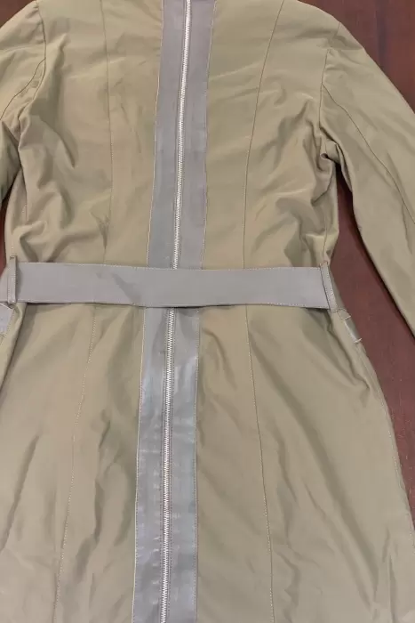 Vestido Trench-coat XL. Vestido versátil fabricada en Brasil, que puede ser usado como vestido o como un trench coat. Tela estilo PRADA y totalmente forrado. Detalles en piel ecológico. Pieza muy elaborada y elegante. 99cm largo y 44cm hombro.