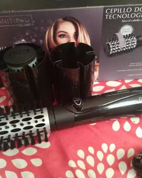 Cepillo secadora. Cepillo alaciador giratorio con cabezales cambiables