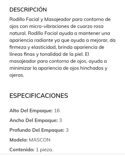 Rodillo facial cuarzo rosa natural. Ayuda a mantener la elasticidad de la piel