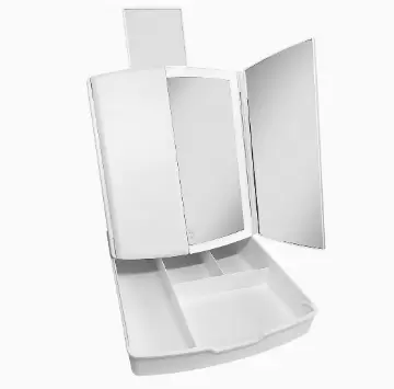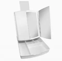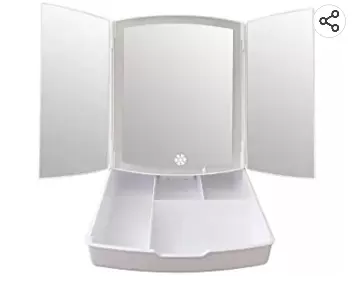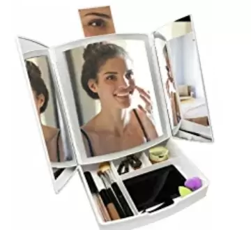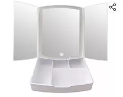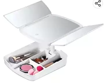 Espejo con luz. Hermoso espejo con luz dos tipos de luz cálida y fría y espejo de aumento con organizador de maquillaje y brochas se puede compactar para trasladarlo fácilmente se puede usar con pilas y con luz solo disponible en color negro