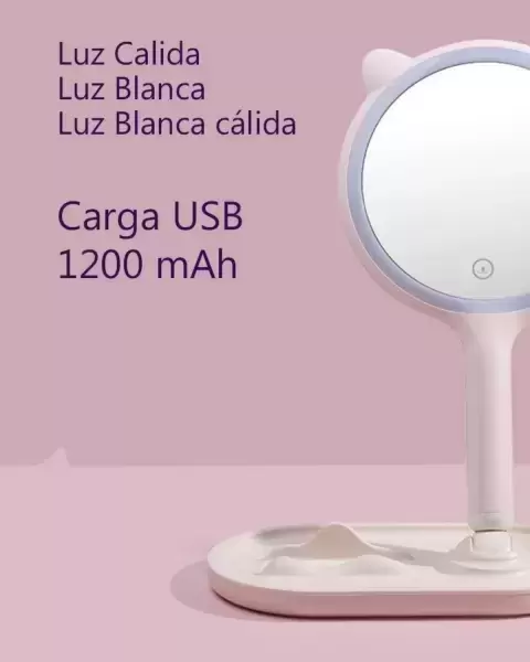 Espejo con luz Led en forma de gato. Espero con luz Led3 cambios de luz, la pantalla es Touch.
