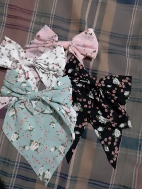4 moños estampados tamaño.medianocon broche de caimán metálicoEnvío a la brevedad