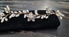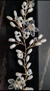 Arreglo o tocado para novia, de cristal con piedras color blancas con dorado perfecto para ese día especial