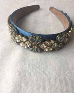 Diadema con pedrería. Diadema en tela de satén de excelente calidad, con pedrería de cristal bordada tipo barroco.