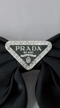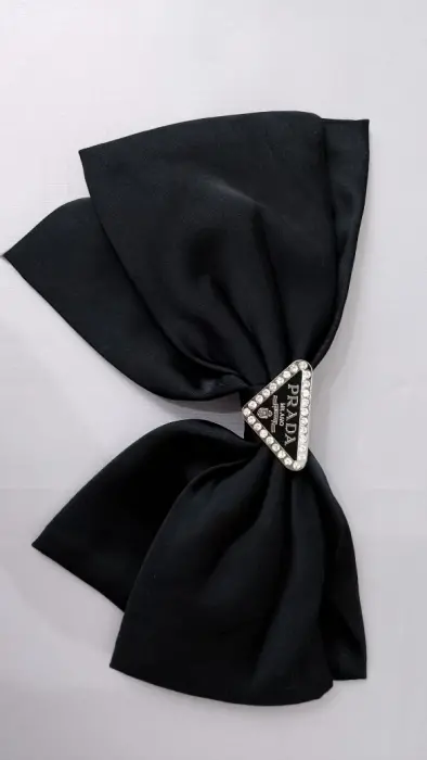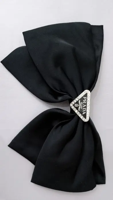 Moño grande con broche. Moño grande de tela, con placa grabada.