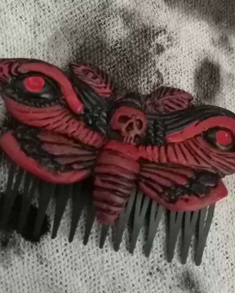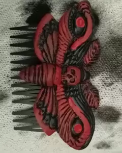 Peineta de polilla. Peineta de polilla, elaborada artesanalmente, en material resina, mide 5 CM de largo, la peinéta es de acero inoxidable.Tal y como en esta imagen.