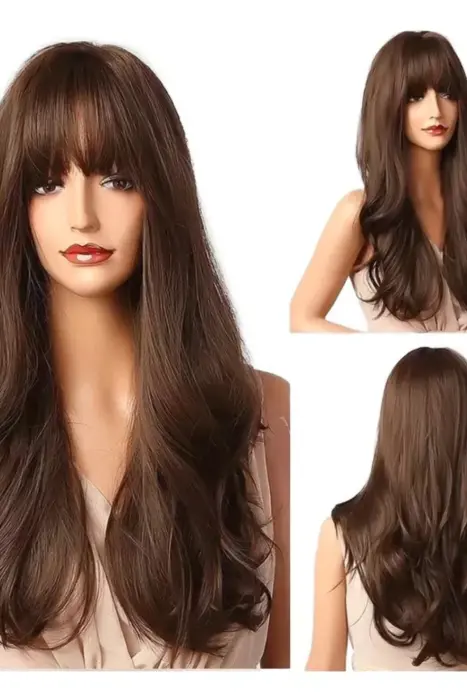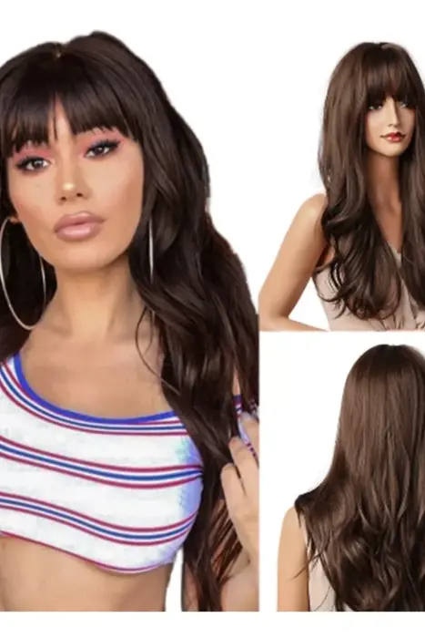 Peluca Larga Marrón Rizada Ondulada. La peluca está hecha de material de fibra de alta temperatura, que no es tóxico, es suave, duradero, no se enreda y no tiene olor. Se adapta a todos los tonos de piel y te hace más bella y sexy, como un cabello natural sano. El cabello largo y suave te permite combinarlo con diferentes peinados y puede darte una apariencia única.