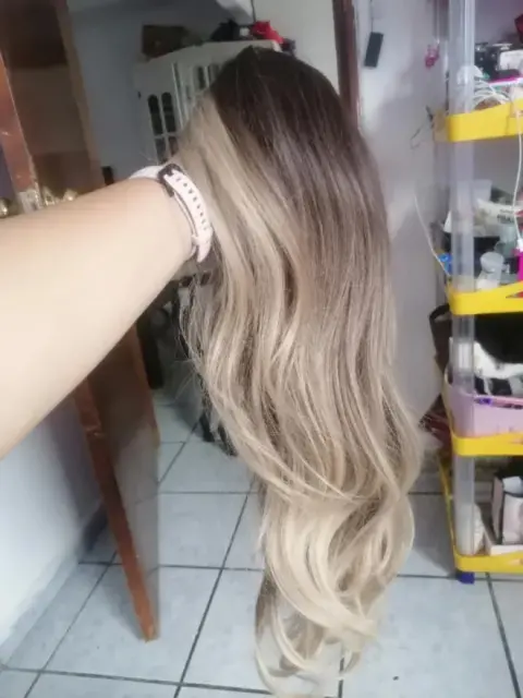 Peluca Rubia. Hermosa peluca nueva con simulación de raíz trae cinta ajustable el pelo es suave no brillosa.Es larga se puede planchar a temperatura muy baja.