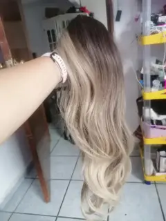 Hermosa peluca nueva con simulación de raíz trae cinta ajustable el pelo es suave no brillosa.Es larga se puede planchar a temperatura muy baja.