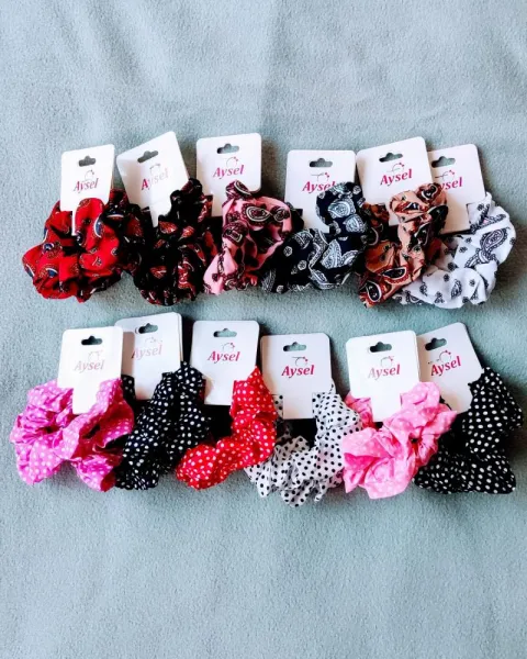 Hermosísimos Scrunchies nuevos con etiqueta, arma tus looks de cada día o las de tu princesa con estos lindísimos colores y diseños, el paquete incluye 6 pares de cada color, osea que en total recibirás 12 piezas. Los productos se envían en cajas o sobres recicladas.