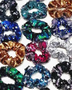 Hermoso set de 10 scrunchies de diferentes colores ó en pares en lentejuela reversible