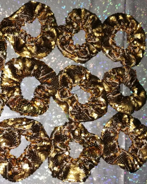 Set de Scrunchies (donas). Hermoso set de 10 scrunchies de diferentes colores ó en pares en lentejuela reversible
