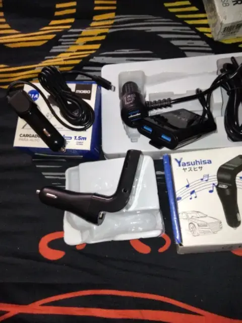 3 cargadores d automóvil 🚘🚗. Los tres se van EL PRIMERO ES "MARCA"YASUHISA" PARA PONERLE MEMORIA DE MUSICA TANTO USB Micro CD TRAE BOTONES PARA SUBIR BAJAR VOLUMEN APAGAR Y EL DE "MARCA" TRANSHINE DE 4 SALIDAS PARA CELULAR Y EL DE MARCA "MOBO"DE UNA SOLA SALIDA A iPhone los tres se van