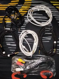 Auxiliares y cable de salida a "TV". Completamente "NUEVOS" AUXILIARES DE UN METRO Y MEDIO TIPO HILO DE CEDA MUY AGUANTADORES A AXIDENTES DE TIPO JALONES Y LOS OTROS CABLES COAXIALES DE ENTRADA A CEL Y SALIDA A "PANTALLA TV"