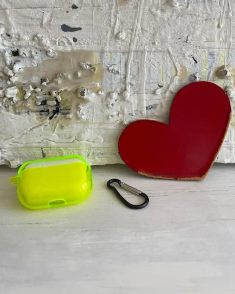 Funda neón para AirPods Pro. Funda de silicona neón. La tapa está unida a la base e incluye el gancho.