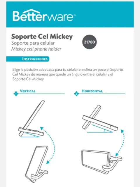 Práctico accesorio soporte para celular que puedes llevar en tu bolsa de mano, o mochila siempre, con diseño de Mickey MouseMarca Betterware nuevo y listo para usarlo