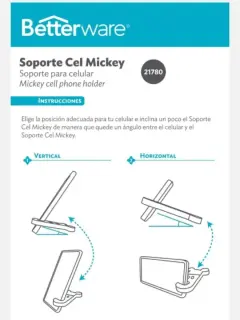 Mickey Mouse Accesorio porta celular. Práctico accesorio soporte para celular que puedes llevar en tu bolsa de mano, o mochila siempre, con diseño de Mickey MouseMarca Betterware nuevo y listo para usarlo