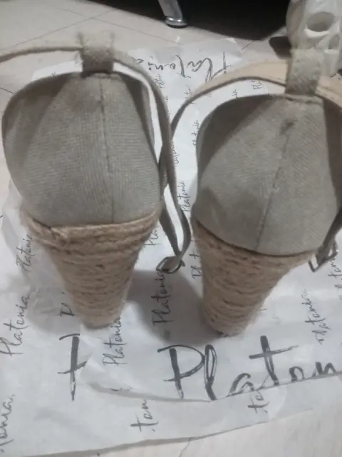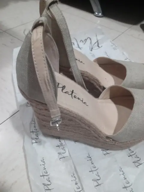 Alpargata color beis plataforma talla 4, muy cómoda.