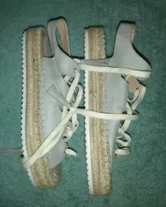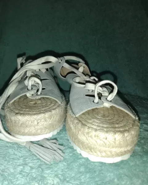 Alpargatas azul cielo, plataforma corrida cubierta de lazo, agujetas con detalles azul cielo, la plataforma mide 2.5 cm, en perfectas condiciones