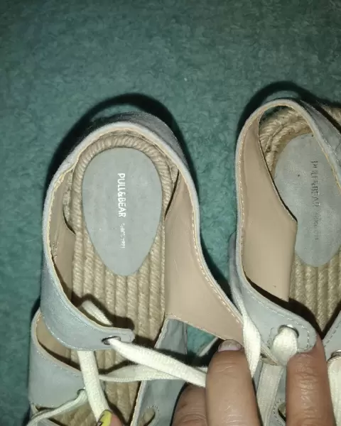 Alpargatas azul cielo Pull&Bear. Alpargatas azul cielo, plataforma corrida cubierta de lazo, agujetas con detalles azul cielo, la plataforma mide 2.5 cm, en perfectas condiciones