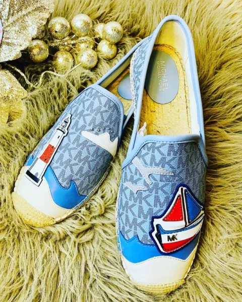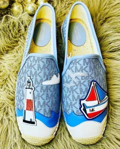 Hermosas alpargatas edición especial MICHAEL KORS, confeccionadas en bello color azul cielo monogram con estampado de un faro y barquito. Talla: 25.5 México. Súper cómodos y muy adecuados para la estación del año. Producto nuevo sin caja. ¡Llévalos contigo a todos lados!