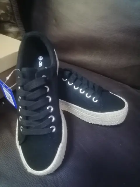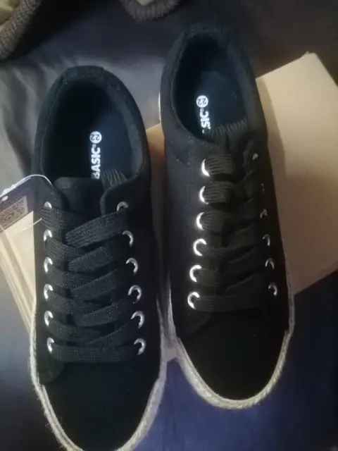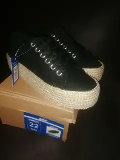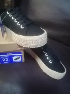 Hermosa y lindas alpargatas de lona color negro talla 22 nuevas con caja suela de yute plataforma de 3.5 centímetros cómodas y frescas le va perfecto a cualquier estilo y moda, en todos los precios de mi clouser me puedes ofertar y puedo ajustar tu pedido para una sola exhibición.