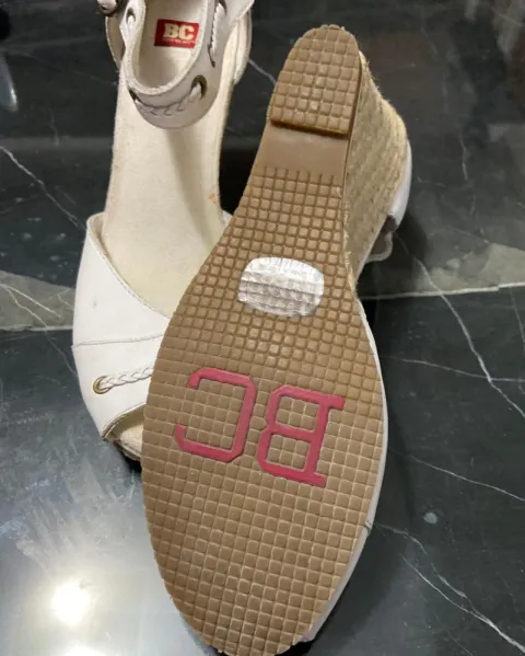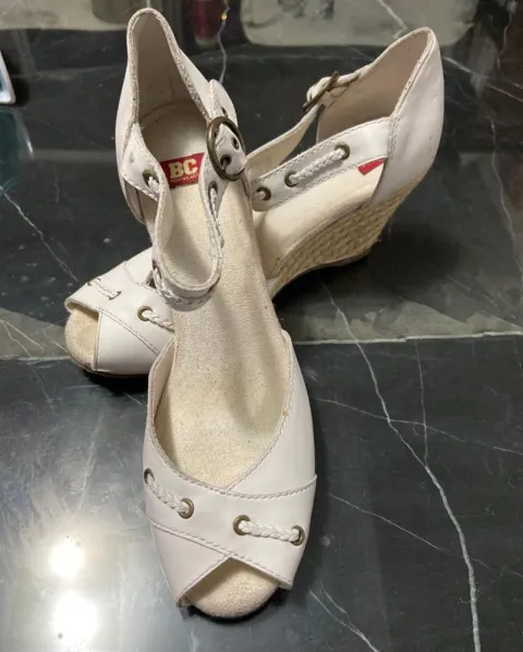 Alpargatas blancas BC footwear. Alpargatas blancas tacón de 8 cms, punta boca de pescado con adornos de trenzas tejidas, nuevas de piel