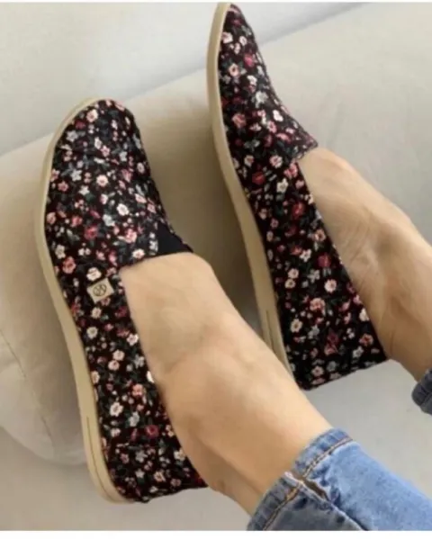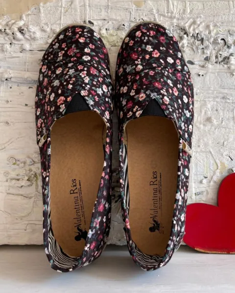 Alpargatas negras floreadas