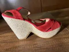 Alpargatas rojas. Cómodas alpargatas rojas, tacón de 13 cm y plataforma de 5 por lo que tu pie solo sube 8 cm, son ideales para talla 23.5 con pie delgado o 23 con pie llenito