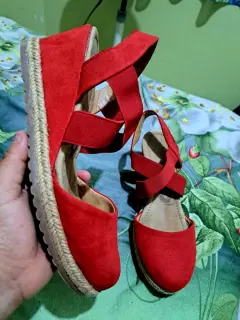 Marca cklass, interior en piel,plataforma con Yute, color rojo con elástico intacto...No rallados ni descarapelados#5 vienen en su número