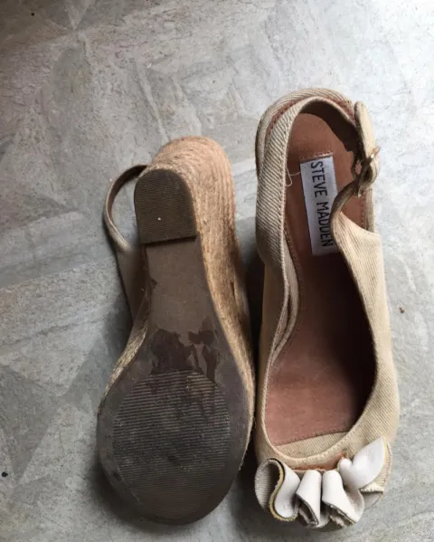 Linda’s alpargatas usadas una sola vez para evento como son de tela están un poco cambiando el color de que están guardadas