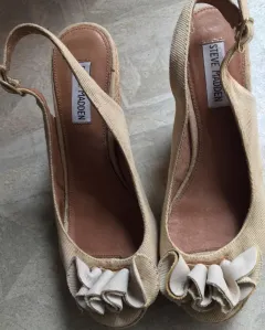 Zapatos flores. Linda’s alpargatas usadas una sola vez para evento como son de tela están un poco cambiando el color de que están guardadas