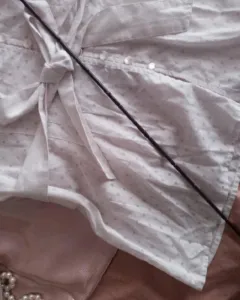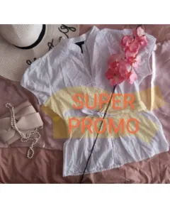 4 PRENDAS X 300. Blusa blanca básica se ajusta a l cintura, manga corta, tiene estampado de puntos