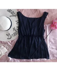 Blusa de tirantes gruesos, negra, se ciñe a la cintura, ligeramente redicida recomiendo a m