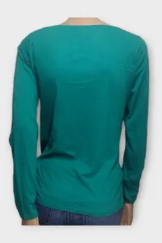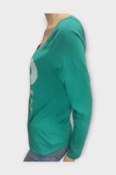 American Eagle Blusa Deportiva Dama Algodón Verde LBlusa deportiva para dama marca American Eagle 60% Algodón 40% PoliésterMarca: American EagleOrigen: VietnamMaterial: 60% Algodón 40% PoliesterTalla: LEstilo: DeportivoPatrón: DeportivoColor: Verde Cierre: AbiertoPecho: 49 cmLargo: 63 cmHombro: 37 cmManga: 66 cmRopa de USO en muy buen estado