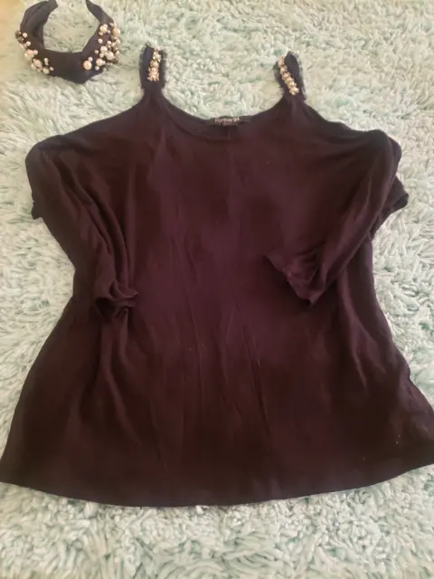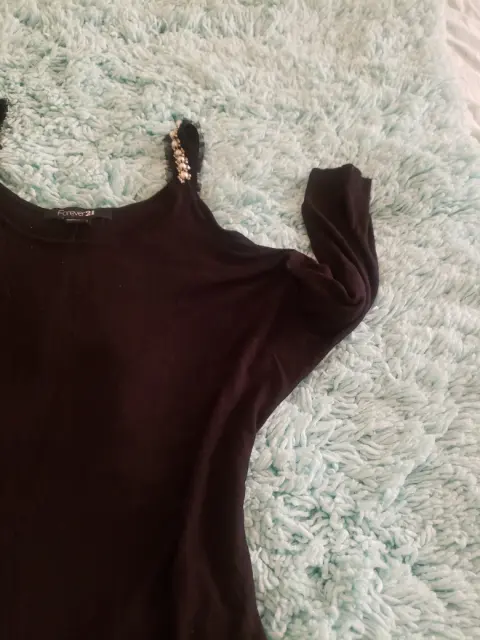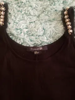 Bellisima blusa forever 21!!. Bella blusa fresca con tirantes adornados con perlas y encaje, color negro, solo q en la foto no sale bien el color. Dice talla L pero le voy más a M Pero esta bellisima.