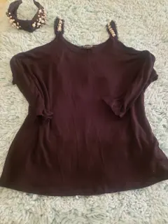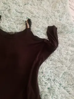 Bella blusa fresca con tirantes adornados con perlas y encaje, color negro, solo q en la foto no sale bien el color. Dice talla L pero le voy más a M Pero esta bellisima.