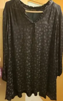 Bellísimo bluson de poliester y rayón, super mega cómodo, tiene finas florecitas grabadas en la parte delantera, mangas tipo globo, fino detalle de botones en la parte delantera, medidas: hombro a hombro 48 cms, axila a axila 74 y 148 de diámetro y largo 74 cms parte delantera y 78 parte trasera, dixe talla L pero puede quedar hasta una 1XL.Aquí no aparece la marca pero es LANE BRYANT., HECHO EN INDONESIA.