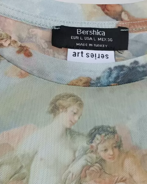 Bershka art series top mesh renacentista. Bershka Art Series ★Top de mesh con print de pintura renacentista en fondo azul que simula el cielo ☁️ viene marcada como talla L pero viene reducida le queda a una M
