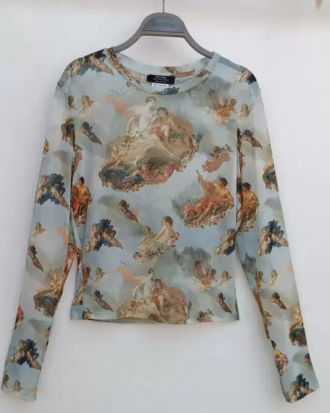 Bershka Art Series ★Top de mesh con print de pintura renacentista en fondo azul que simula el cielo ☁️ viene marcada como talla L pero viene reducida le queda a una M