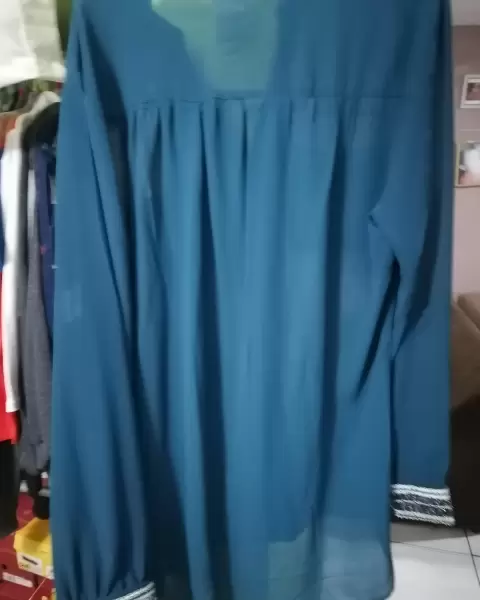 Blusa talla xlCklassNueva sin etiquetaEs larga y transparenteColor sxul petroleo