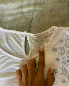 Blusa sin mangas color blanco con bordado azul, muy bonita talla M.