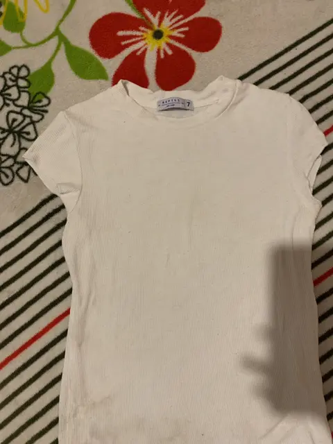 Blusa. Blusa blanca, casual, de manga corta, pegadita, larga, cómoda, se estira