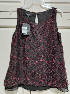 Blusa Ivonne nueva color negro con bolitas rojas. Ideal para una reunion o fiesta de día o de noche.