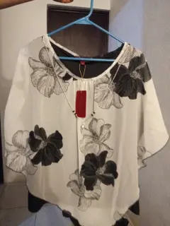 Blusa color blanco y negro, Marca Sahara, totalmente nueva, incluye accesorio, talla 4EG, tela fresca y delgada, ideal para toda ocasión