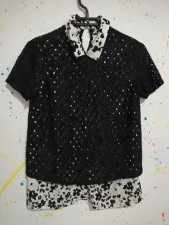 Blusa. Blusa blanco con negro.Tela poliester, nylon y spandexTalla xsDraquelado en negro y fondo blanco con flores negras. Manga corta y cuello