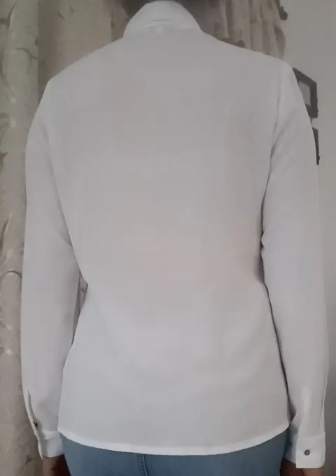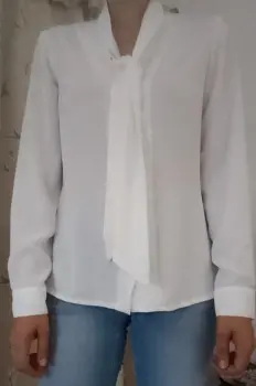 Blusa. Blusa entre blanca y color crema con un lacito en el cuello lo pueden dejar suelto o en forma de moño muy elegante y bonita.