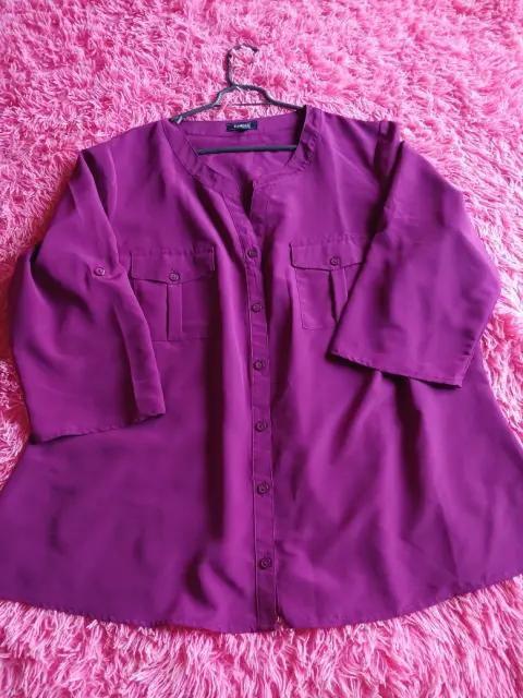 Blusa 3x morada. Hermosa blusa color betabel, con botones al frente manga tres cuartos, amplia tela fresca, en excelentes condiciones segunda americana